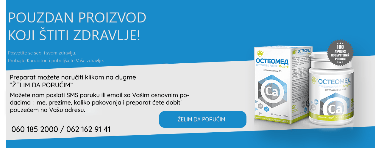 Imala sam problema sa gustinom kostiju, osteoporoza. Po preporuci lekara Osteomed sam pila 4 meseca, a sada nastavljam još dva meseca. Kod prve kontrole posle dva meseca stanje se osetno popravilo, sad idem na drugu kontrolu.